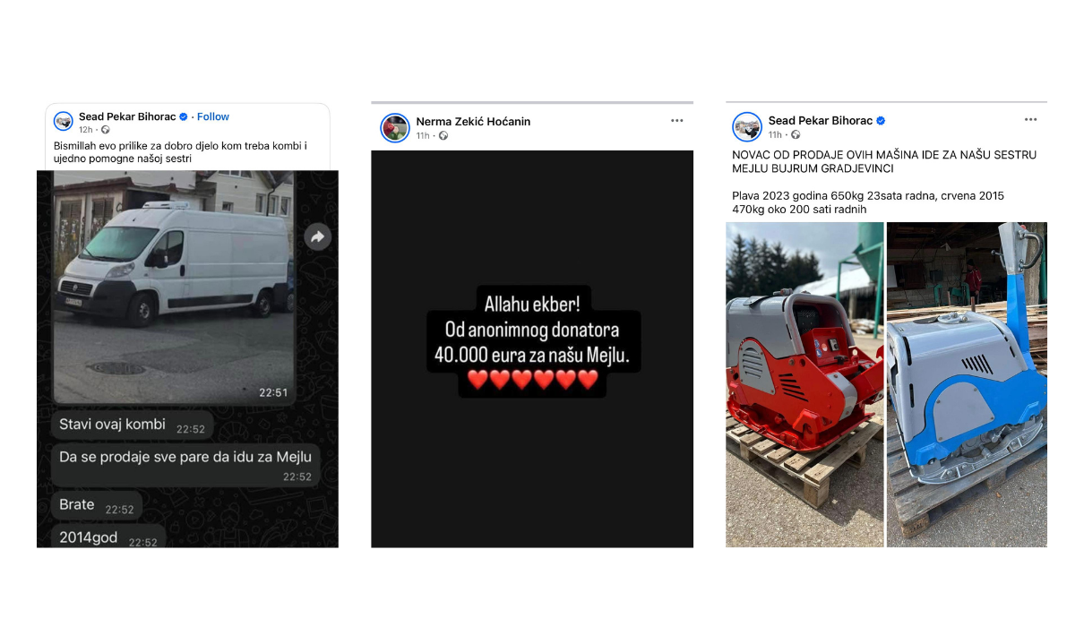 Osim toga, Sead je objavio i prodaju kombija marke Fiat, godište 2014, sa ispravnom hladnjačom, uz poruku da „sav novac ide za našu sestru Mejlu“.