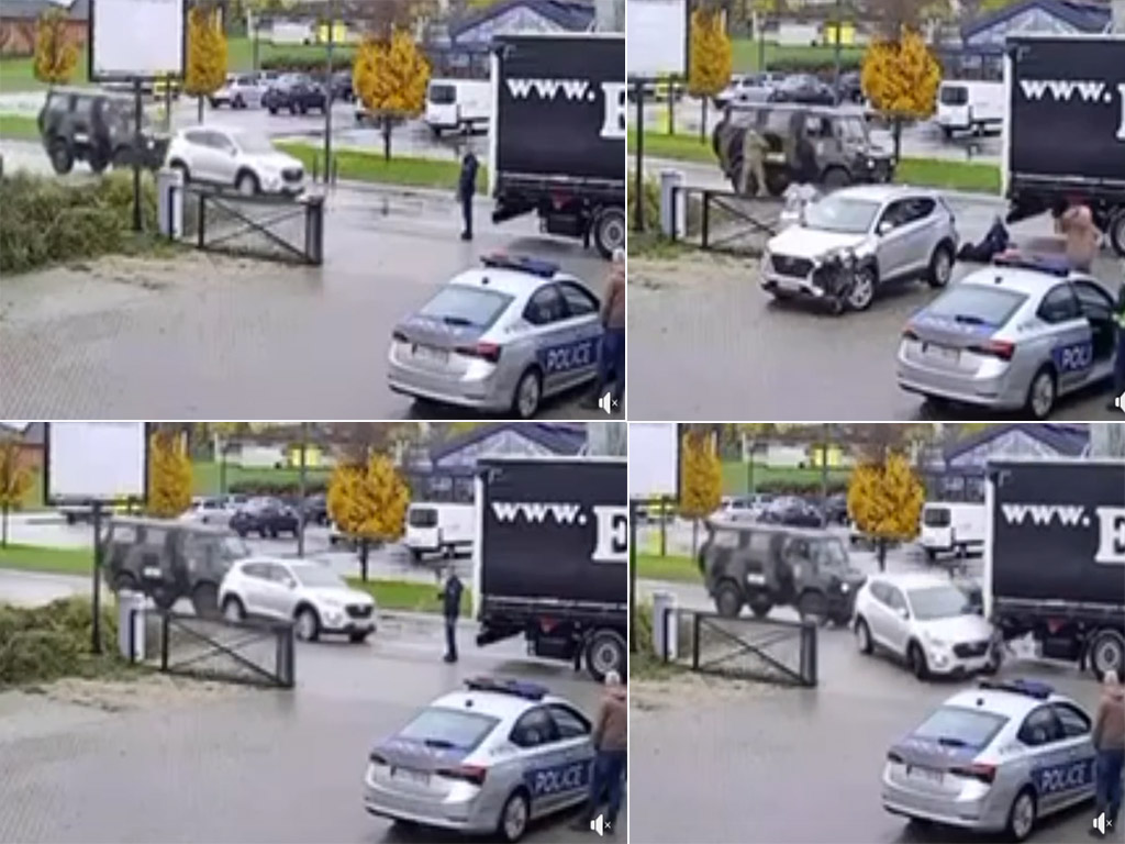Prema do sada dostupnim informacijama, policijski službenik je zaustavio bijeli automobil odmah uz kolovoz. Na snimku se vidi kako se vozilo priprema da se potpuno zaustavi, kada iz istog smjera nailazi vojno terensko vozilo tipa „pizgauer“ pod oznakama KFOR-a. Bez vidljivog kočenja, vozilo se velikom brzinom zabija u zadnji dio automobila.