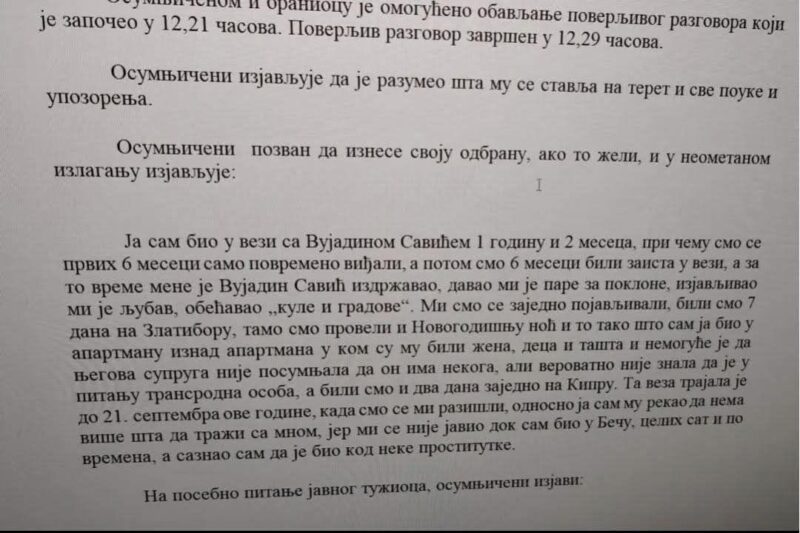 U dokumentima istrage do kojih je došao naš portal nalazi se izjava transrodne osobe A.K. (21), uhapšene zbog ucjene fudbalera Vujadina Savića.