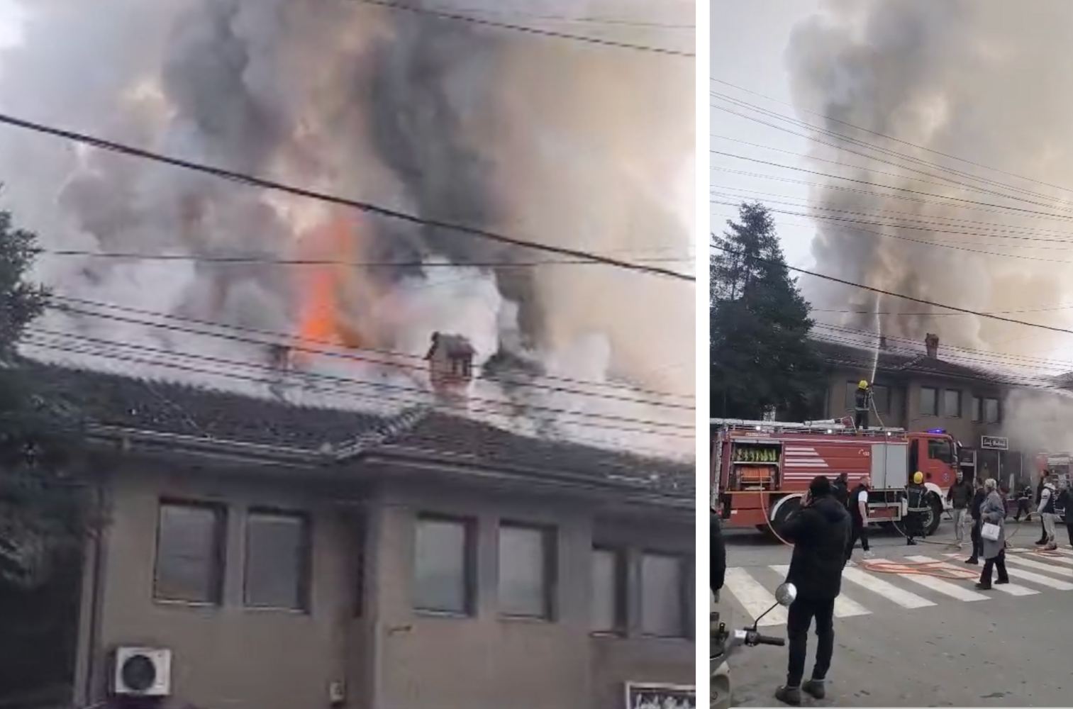 Novi Pazar – Danas u poslijepodnevnim satima izbio je veliki požar u kući koja se nalazi na uglu ulica AVNOJ-a i Stevana Nemanje, u samom centru grada. Snimci sa lica mjesta pokazuju jak plamen koji zahvata unutrašnjost objekta, dok se gust dim širi iznad naselja.