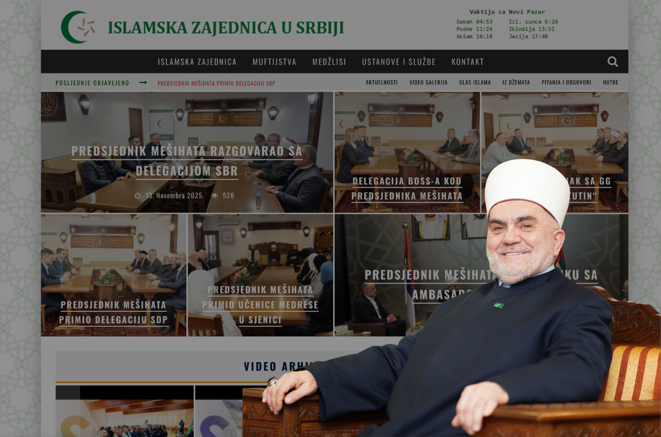 Pregled zvaničnog portala Mešihata Islamske zajednice u Srbiji pokazuje jednoličan i veoma karakterističan obrazac: gotovo sve vijesti, fotografije i javne aktivnosti vrte se oko jedne ličnosti – predsjednika Mešihata, muftije Mevluda Dudića.