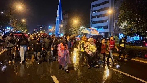 Više hiljada studenata i građana Novog Sada uputilo se večeras po jakom pljusku u komemorativnu šetnju do železničke stanice, kako bi obeležili 11 meseci od tragedije u kojoj je 16 ljudi poginulo kada se na njih obrušila nadstrešnica sa objekta železničke stanice.