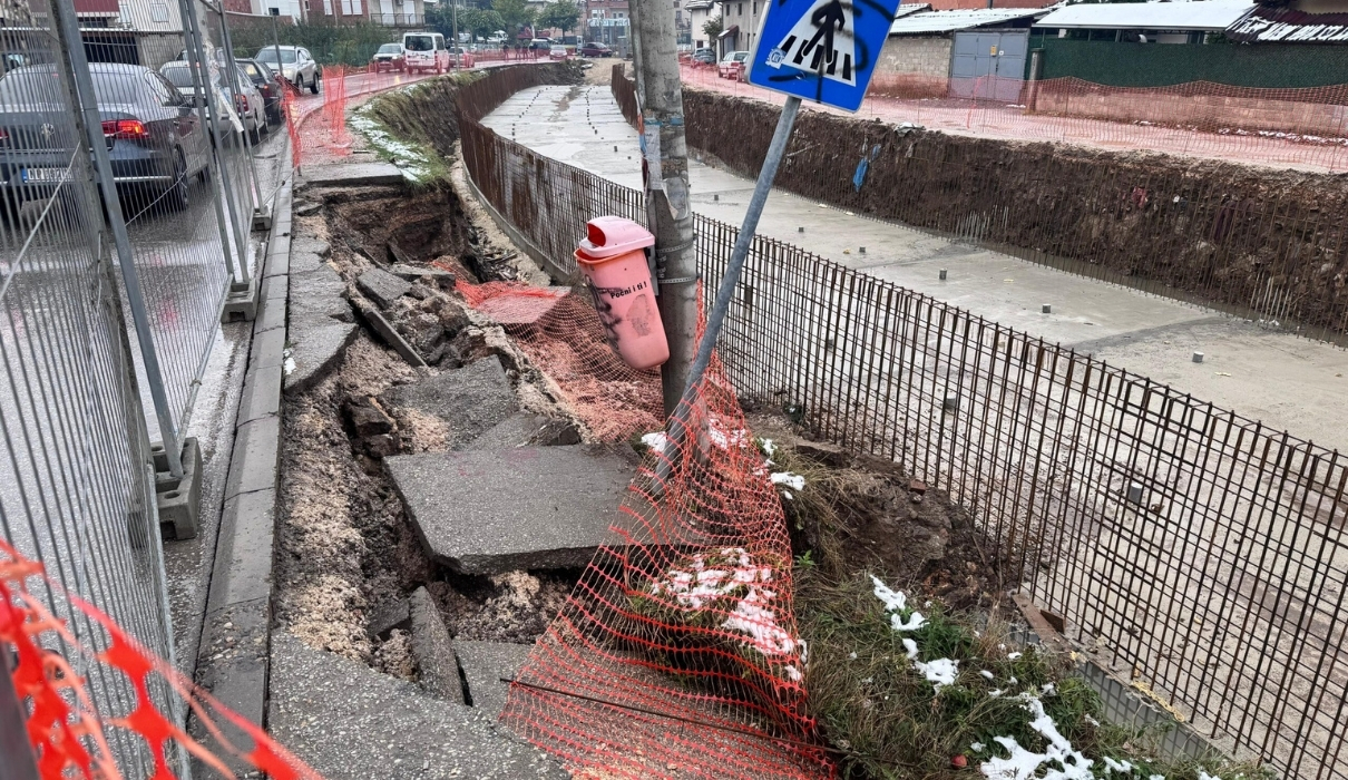U blizini Stambol džamije u Novom Pazaru danas je došlo do urušavanja trotoara i dela kolovoza, pri čemu je bandera sa saobraćajnim znakovima, javnom rasvetom i optičkim kablovima završila u rečnom koritu.