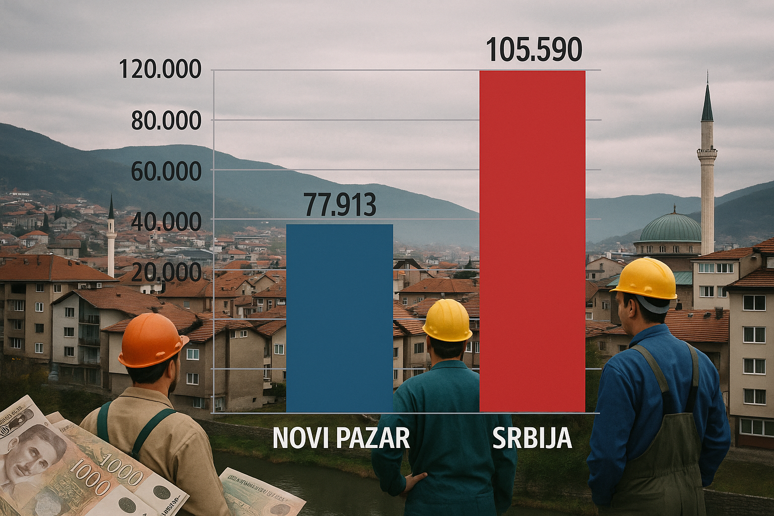 Novi Pazar, 27. oktobar 2025. – Prema najnovijim podacima Republičkog zavoda za statistiku, prosječna neto zarada u Novom Pazaru za august ove godine iznosila je 77.913 dinara, što je među najnižim iznosima u cijeloj Srbiji i znatno ispod republičkog prosjeka.